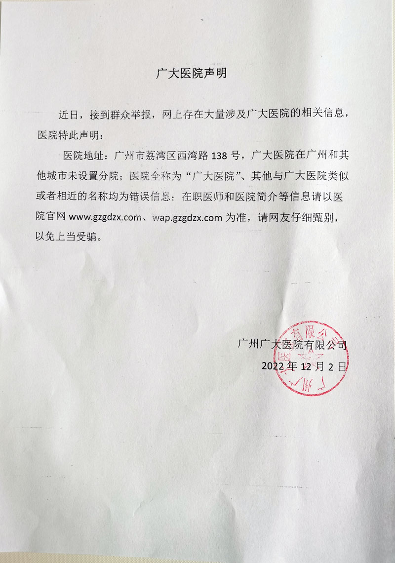 近日,接到群众举报,网上存在大量涉及广大医(yī)院的相关信息,医(yī)院特此声明: